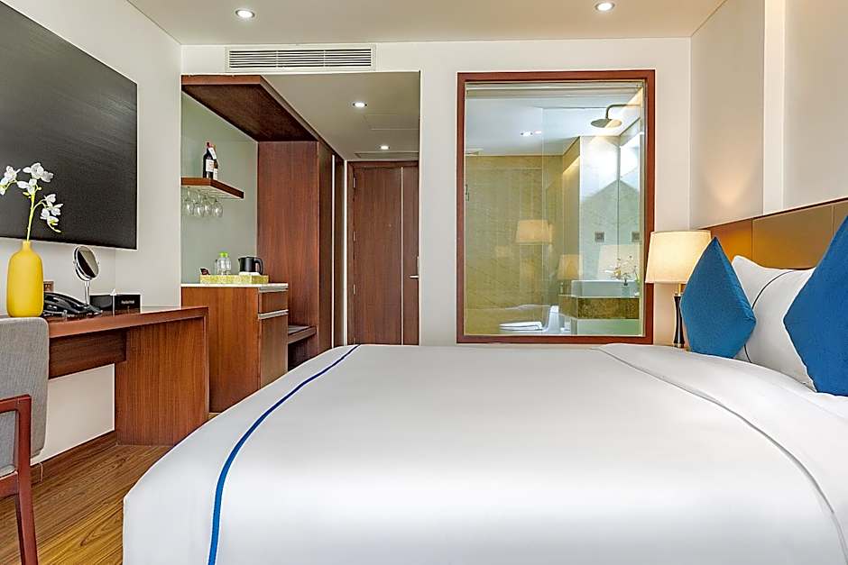 This twin room has partial sea view and a flat-screen TV.