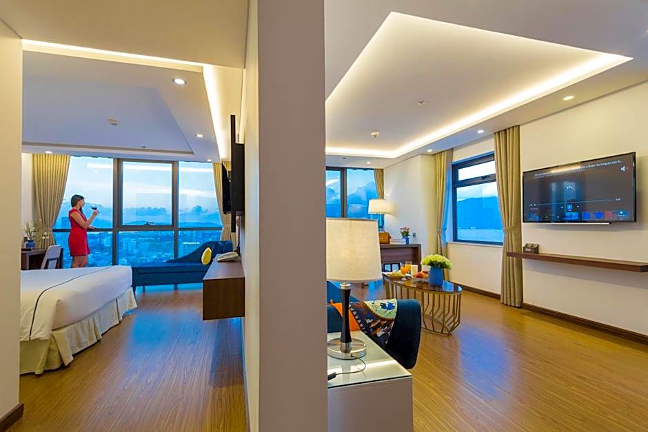 This family room has partial sea view, a cable TV and mini-bar.